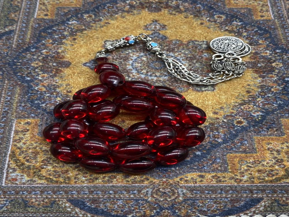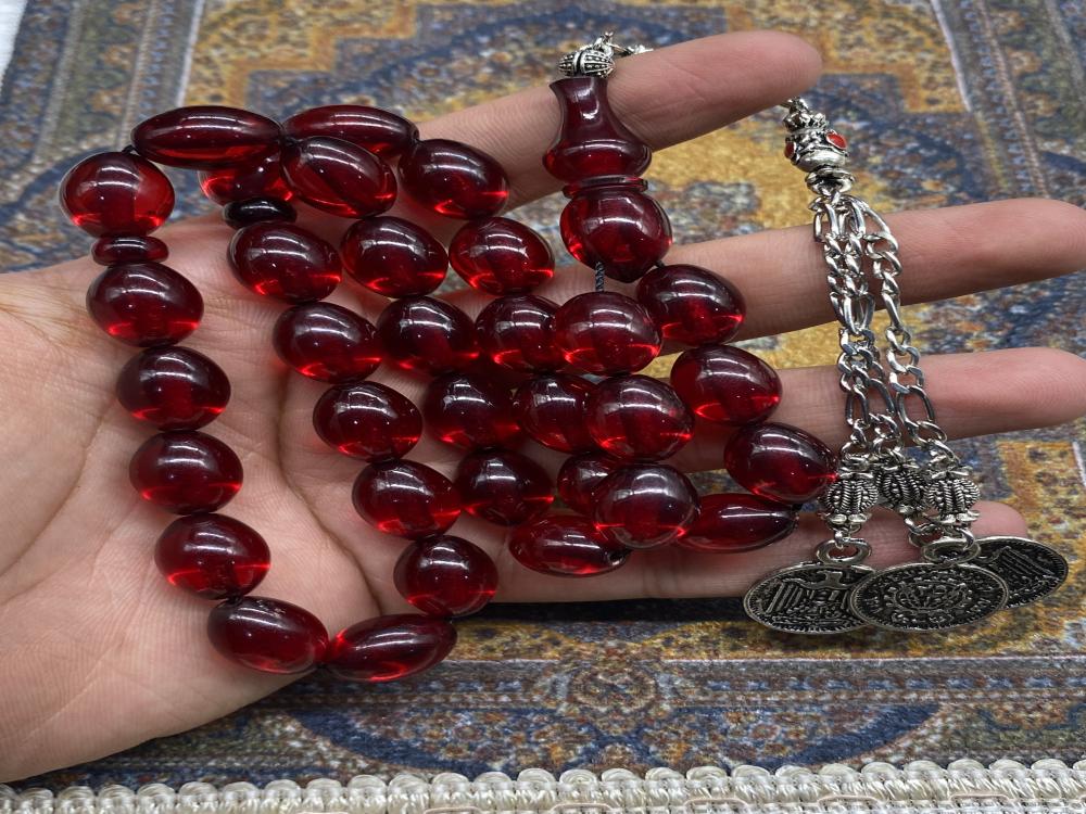 فاتوران لون ياقوتي شغل يدوي مأنتك ٣٣ خرزه ١١ ملي
