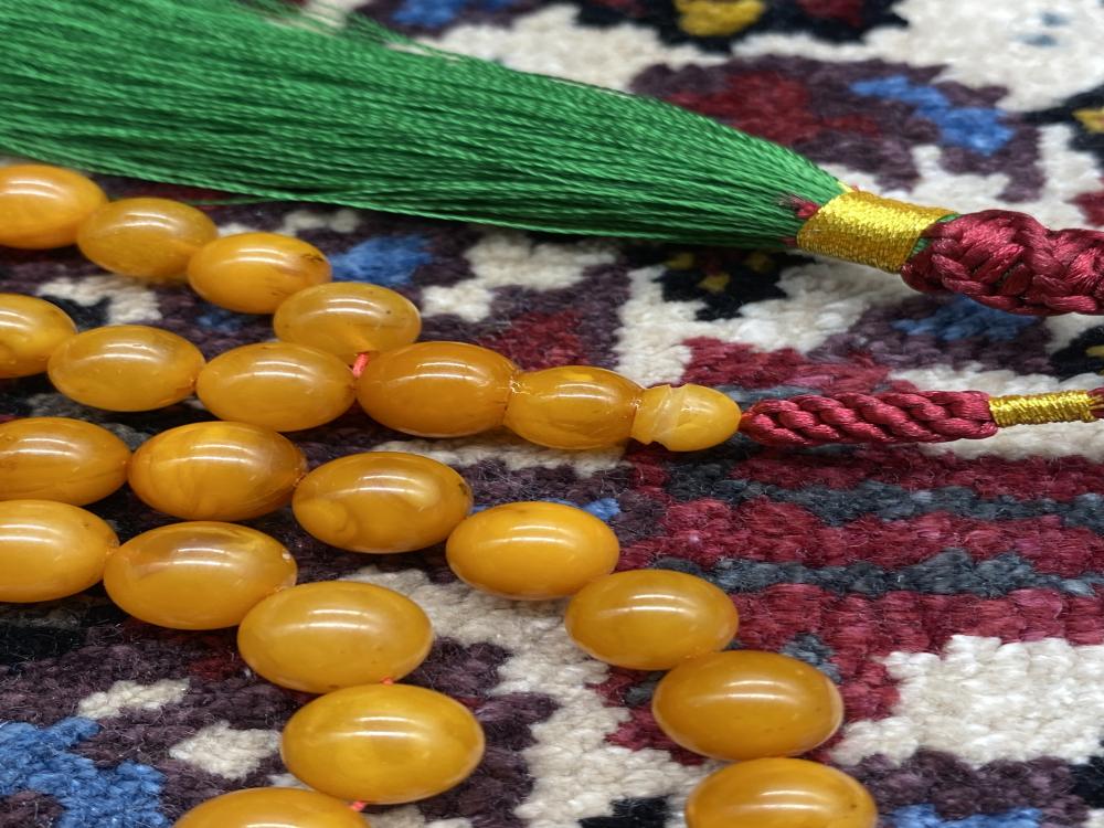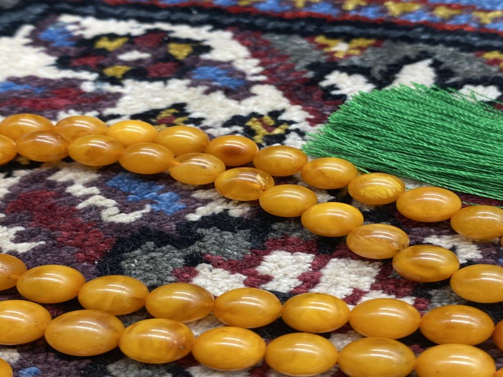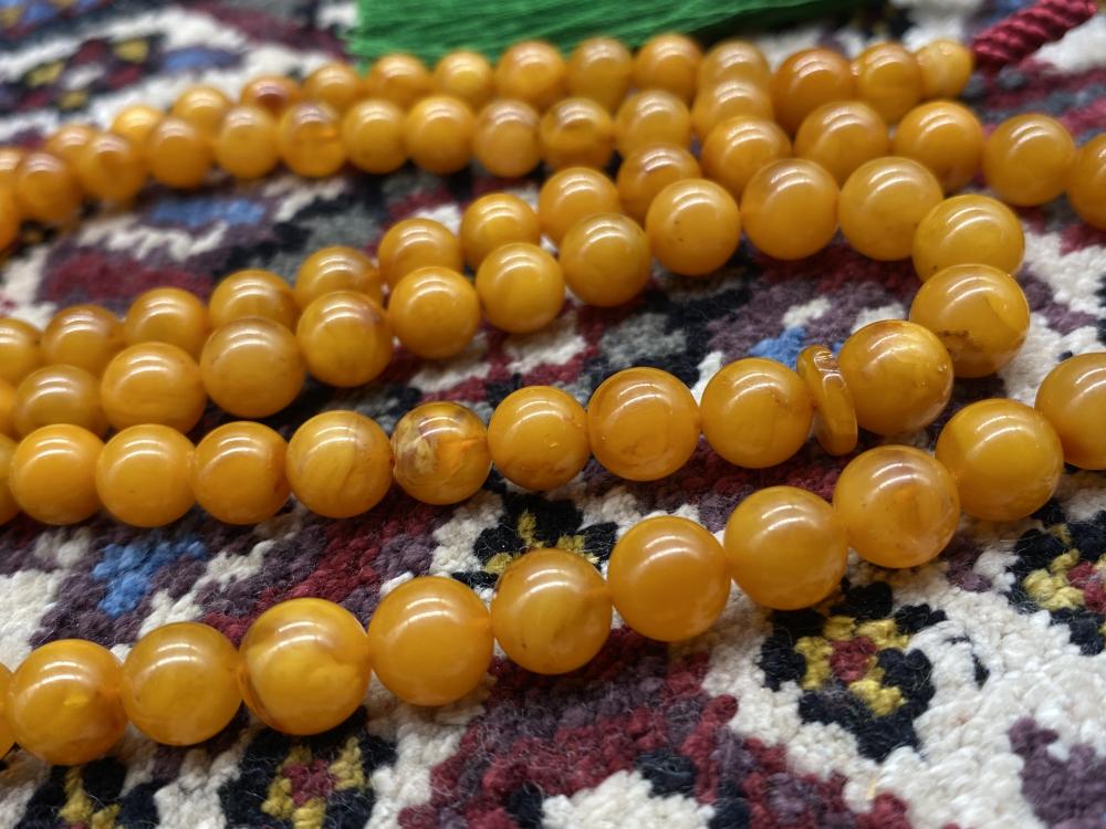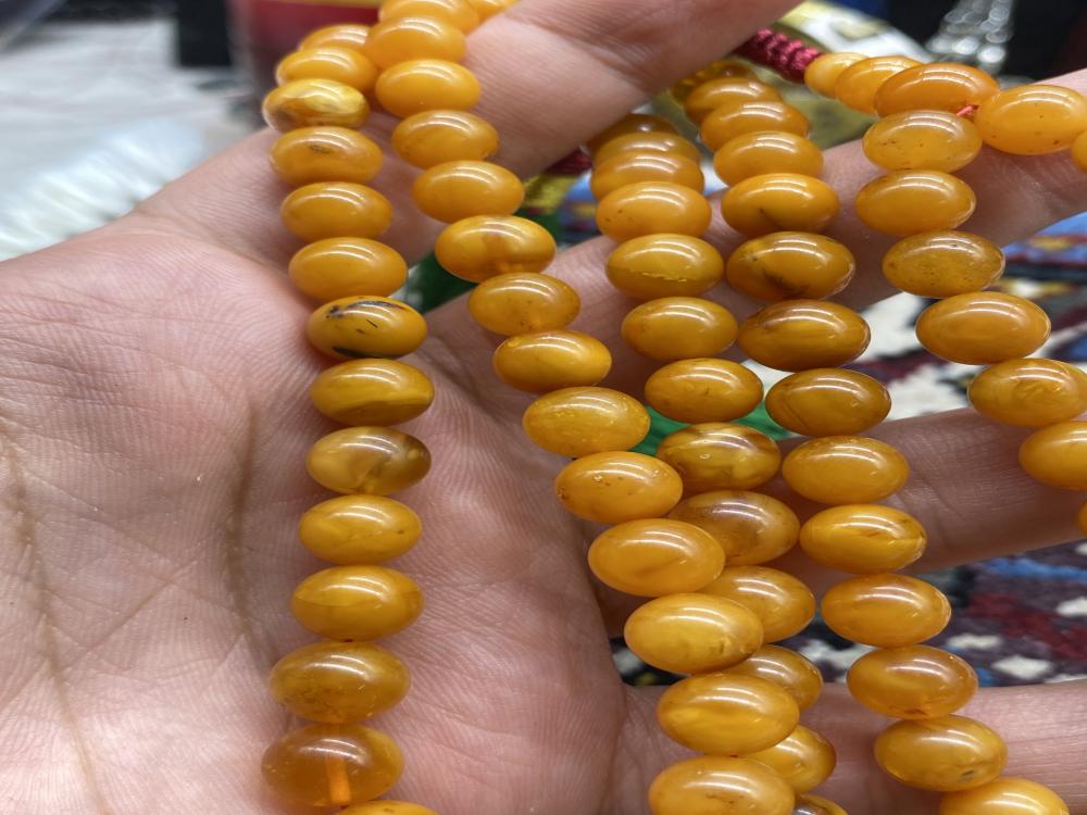 كهرمان الماني قديم ( من اصل عقود المانيه شاهد ٣ قطع ) ٣٥ جرام ٩٩ خرزه ٨-٩ ملي