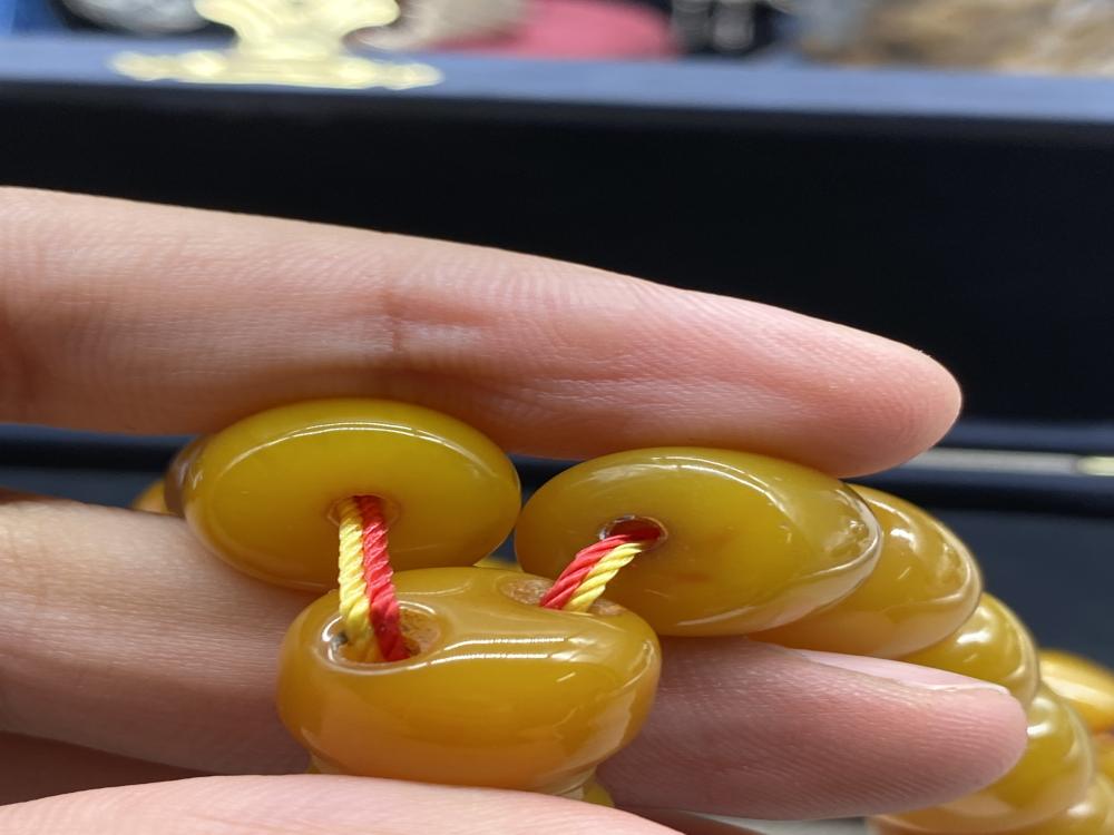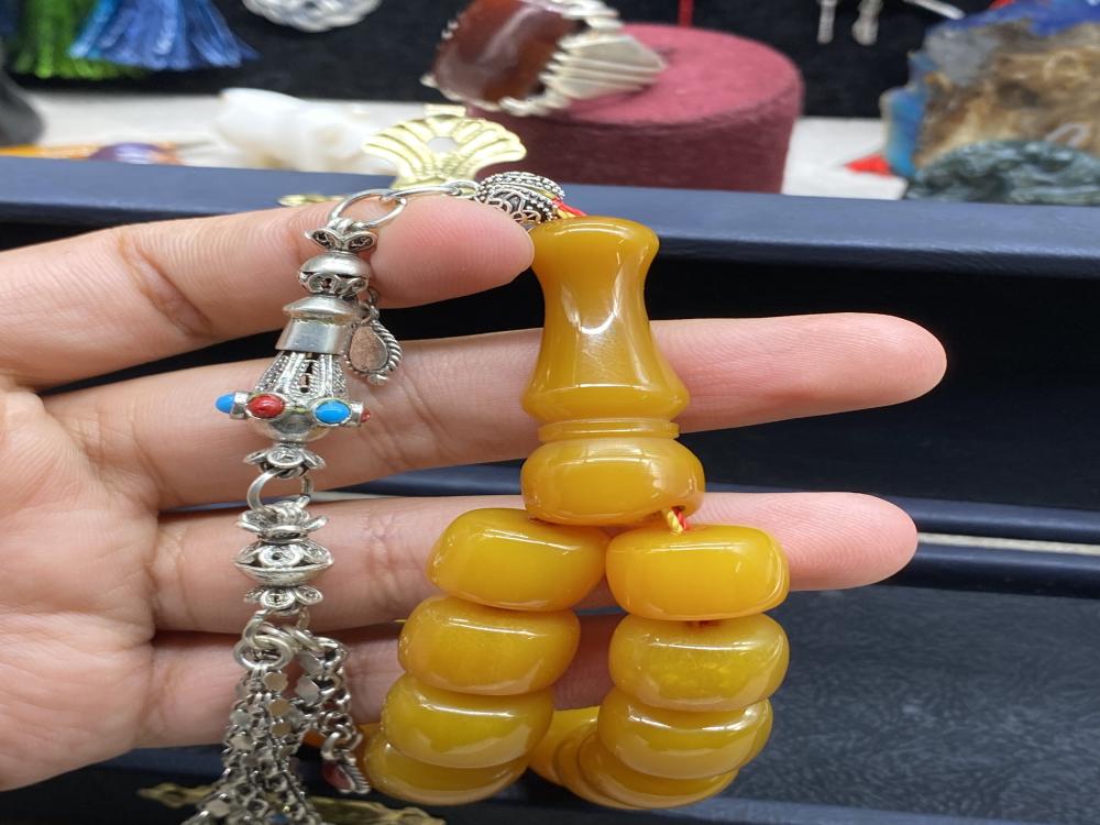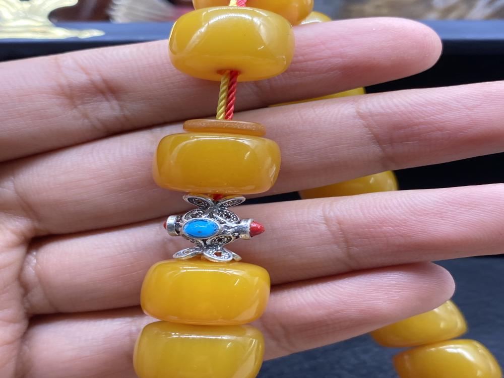مسكي الماني انتيك قديم جداً مخلوط بلكهرمان قص مميز كركوشه فضه عيار 980 ٣٣ خرزه ١٥ ملي مقاس متفاوت ( تجي بلبوكس )